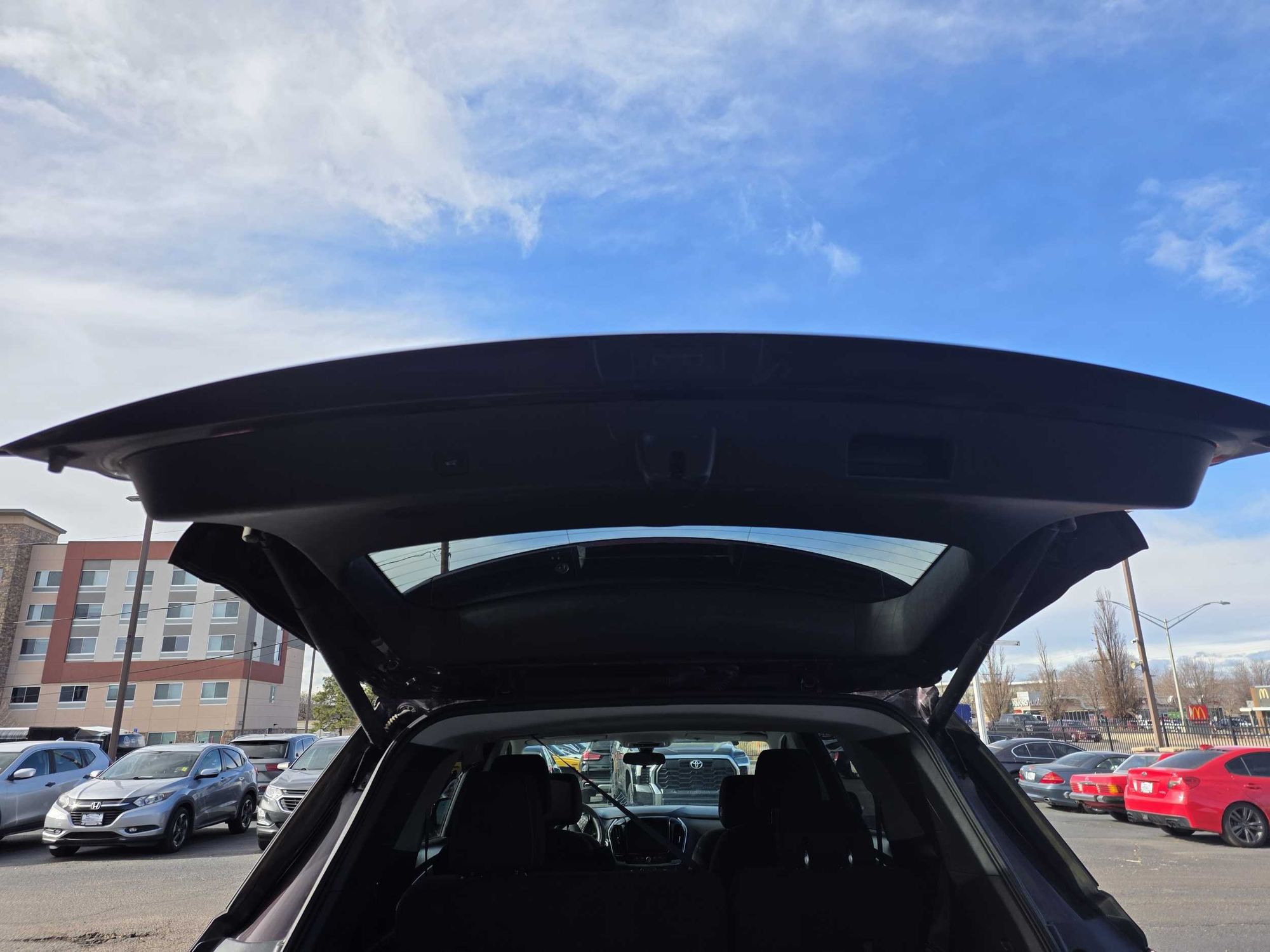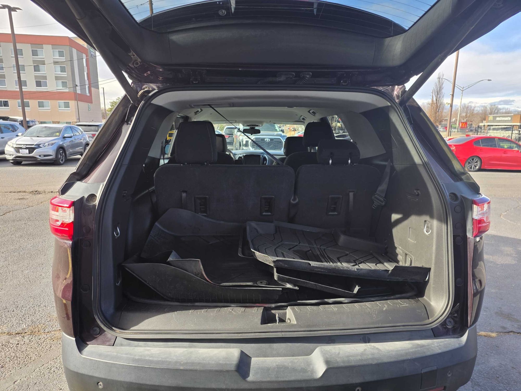 Third-row seatback upholstery: Carpet third-row seatback upholstery